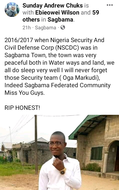 Spokesman of the State Police Command, SP Asinim Butswat, who confirmed the incident, said police operatives have already evacuated the corpse to St. Luke Mortuary in Sagbama, while an investigation was ongoing.