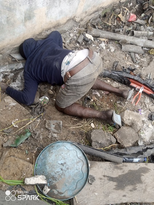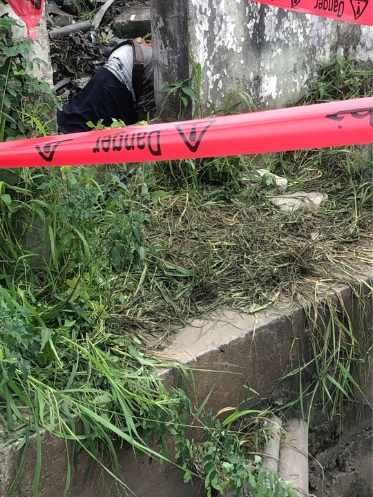 At first, I wasn’t able to snap an explicit picture from my phone because the crime scene had already been taped but fortunately I received this picture from someone around who was there early enough to gain close access to the body for a perfect shot.
