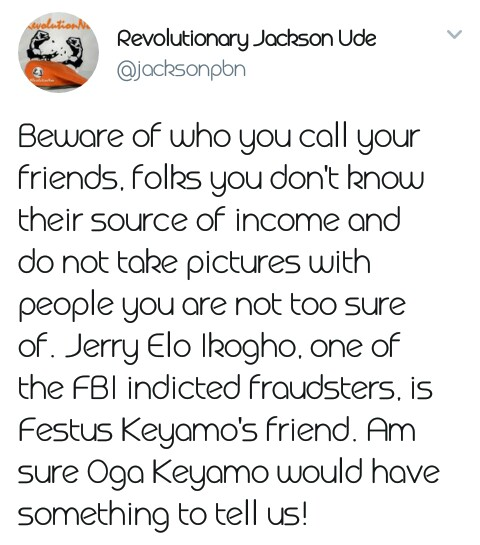 Beware of who you call your friends, folks you don’t know their source of income and do not take pictures with people you are not too sure of. Jerry Elo Ikogho, one of the FBI indicted fraudsters, is Festus Keyamo’s friend.
