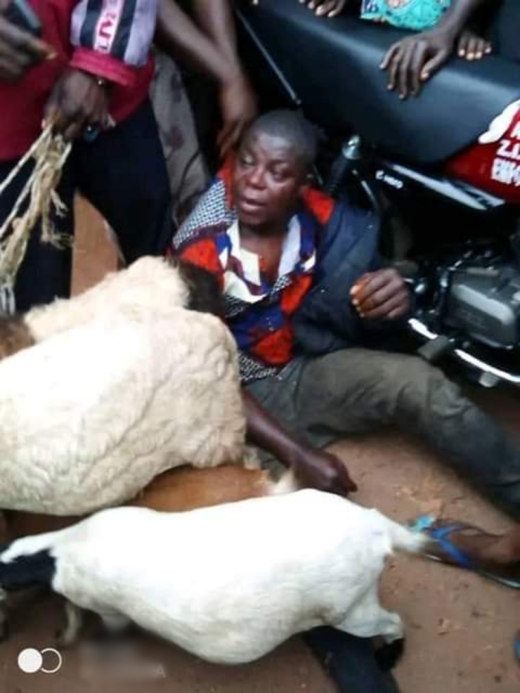 According to a witness, the suspect was nabbed on Tuesday morning, July 18, 2023, while transporting the stolen animals in a motorcycle.