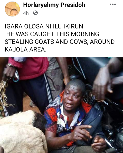 This happened after he was caught stealing two goats and two rams at Kajola area of Ikirun in Ifelodun Local Government Area of Osun State.