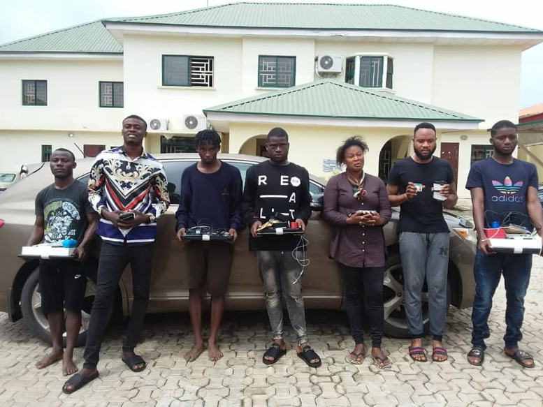 Operatives of the Kaduna Zonal Office of the Economic and Financial Crimes Commission, EFCC, in the early hours of Wednesday, June 26, 2019 raided and arrested seven suspected internet fraudsters in their hideout at No.15, Giwa Road, Barnawa High Cost area of Kaduna State.