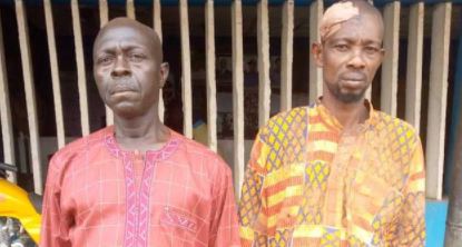 The state police spokesperson, DSP Abimbola Oyeyemi in a statement released on Tuesday November 9, said the suspects identified as Olaolu Fashina and Akinshola Oluwasanmi were nabbed on Monday November 8 after Onipanu Ota Divisional Police Headquarters received a distress call.