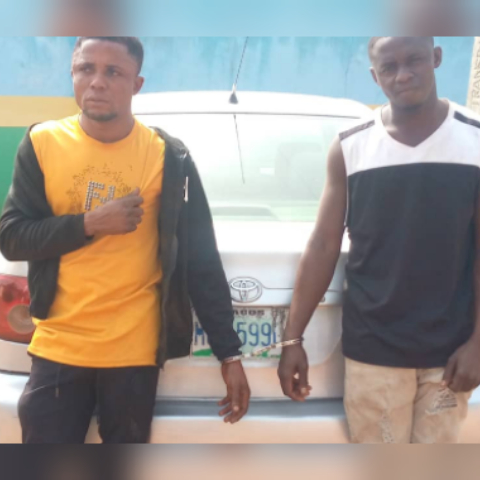 The suspects were arrested following a piece of information received by policemen attached to Iperu divisional headquarters that a suspected stolen Toyota Corolla 2008 model was sighted at a mechanic workshop along Ogere/Iperu road where the suspected robbers were making effort to fix the car. Upon the information, the DPO Iperu division quickly mobilized his men to the scene where the two suspects were arrested and the vehicle with registration number MUS 599 GV was recovered.