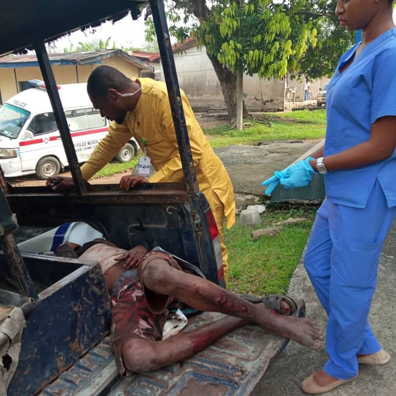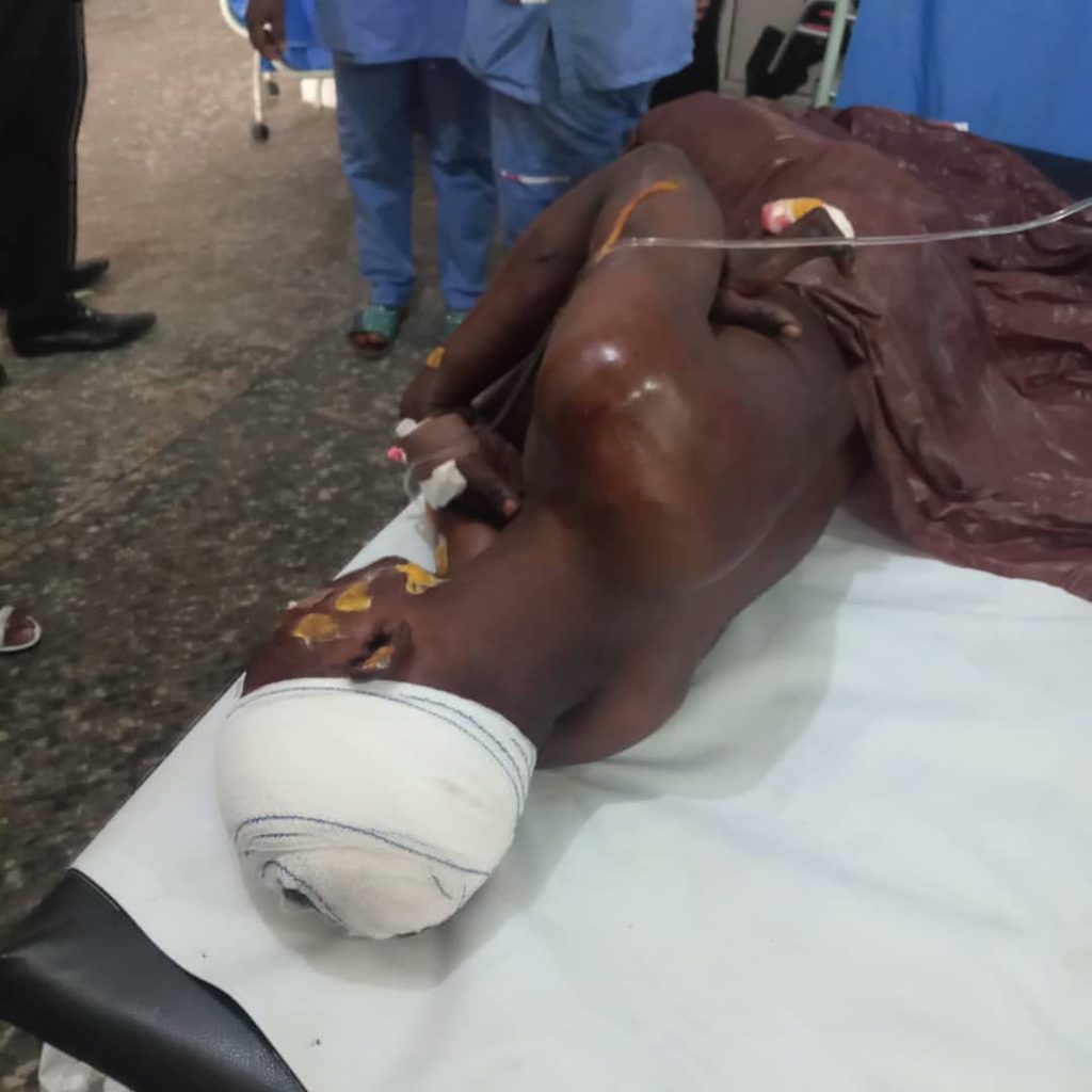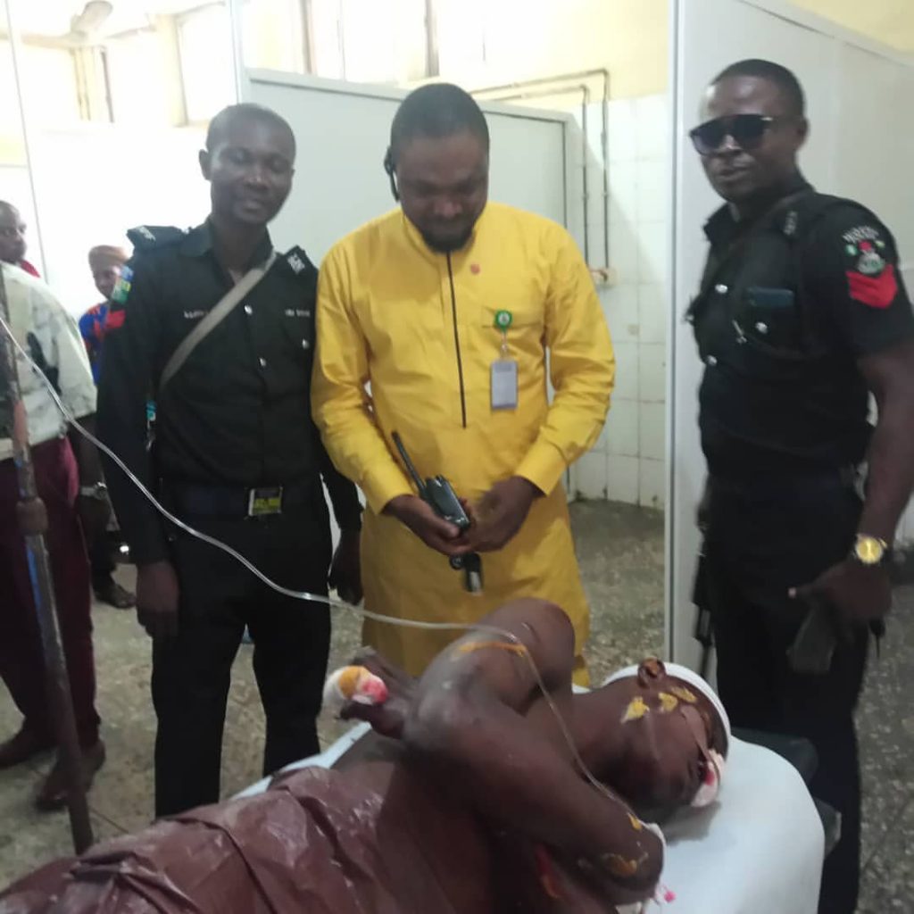 After enquires, we discovered that it’s a case of jungle justice. They alleged he stole a phone in a Church and was mobbed. So he’s been there since morning. No treatment. The police were even waiting for him to die.