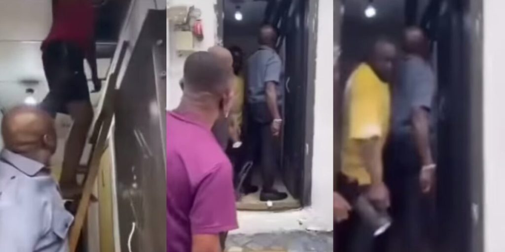 A viral clip captures the moment a young man was apprehended hiding in a bank’s ceiling, sparking widespread outrage online.