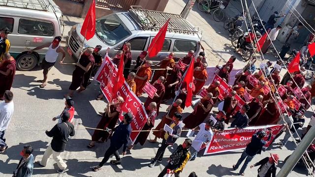 In line with the creative ethos of recent demonstrations where some protesters have worn ball gowns and fancy dress, rallies in Yangon included men and boys dressed in short skirts. “We don’t take off our skirt until we get democracy back,” one sign read.