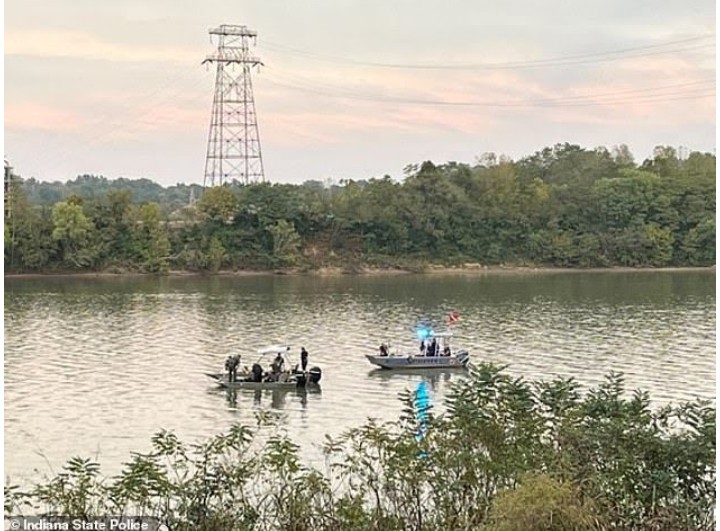 Dive teams are seen searching the Ohio River near Aurora, Illinois for the vehicle this week.