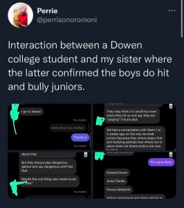 A cousin of the late Dowen College student, Sylvester Oromoni, who first went public with news of his death has shared screenshots of a conversation between his sister and a Dowen College student.