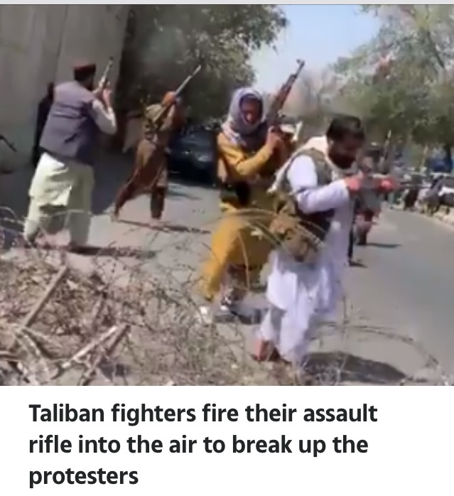 Taliban fighters also broke up a protest over the weekend using their guns and firing tear gas, with reports of them beating bloody some female marchers.