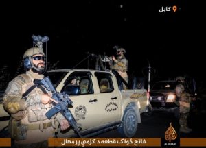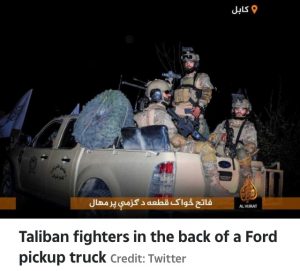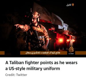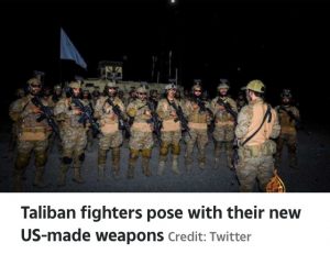 Pictures released by the propaganda arm of the Taliban showed their fighters from the “Badri 313” special forces unit armed with US guns and riding in US armoured vehicles.