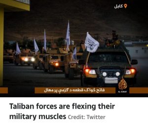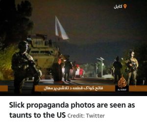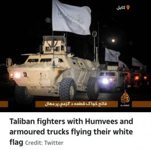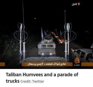 Pictures of the so-called “Victory Force” would be indistinguishable from a Western nation’s military, if not for the distinctive white Taliban flags flying from their Humvees.