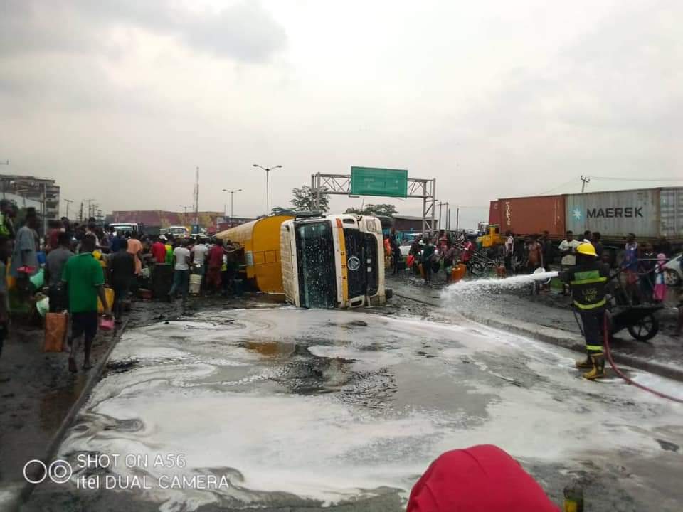 Tanker Laden With Diesel Upturns Content On Apapa Road, Lagos