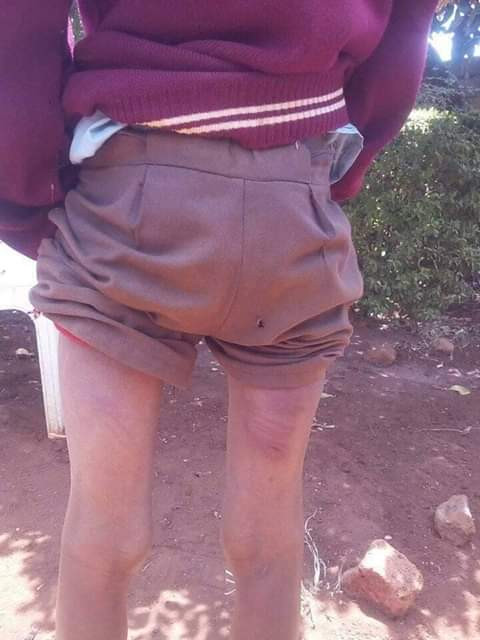 “What Mr. THUO from NJENGA KARUME PRIMARY School in Kiambaa constituency did to an 11 years old pupil for failing his subject. The pupil can barely walk. I thought corporal punishment was banned?
