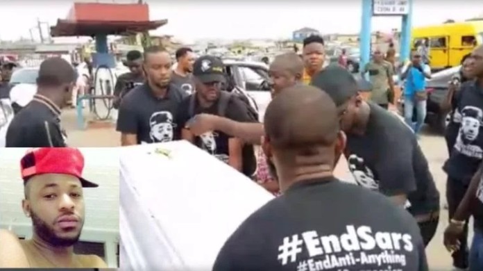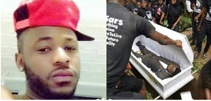 Kolade Johnson, the Nigerian man who was shot dead by a trigger-happy SARS official while watching a football match was buried today.Kolade Johnson was buried at Atan cemetery in Yaba, Lagos.