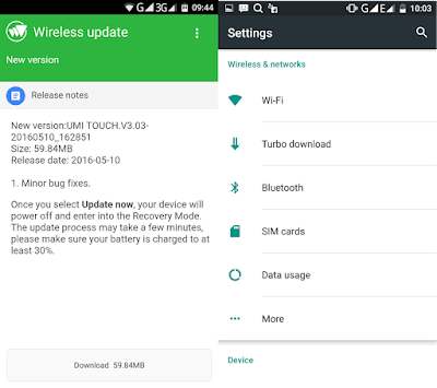 UMi Touch comes pre-loaded with Android 6.0 Marshmallow. The moment I powered it on and it magnet my internet, I received an OTA update from Umi dated to 2016-05-10.