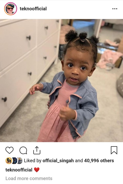 Tekno took to his Instagram handle to share cute picture of her daughter.