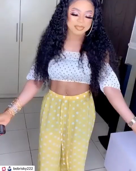 Bobrisky wore a crop top with an expensive hairstyle while showing dance moves.