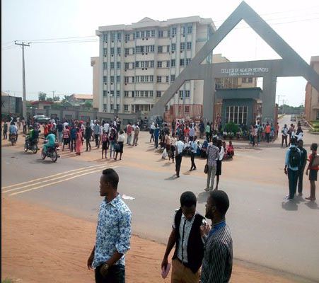Students of Ladoke Akintola University of Technology, LAUTECH, Ogbomoso, have blocked the main entrance to Osun Government House, Oke-Fia, in continuation of their protest against non payment of their lecturers, the development that has paralysed academic activities in the school.