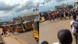 An eyewitness, Michael Oha, disclosed that the incident forced some commercial tricycle operators to block the road in protest.