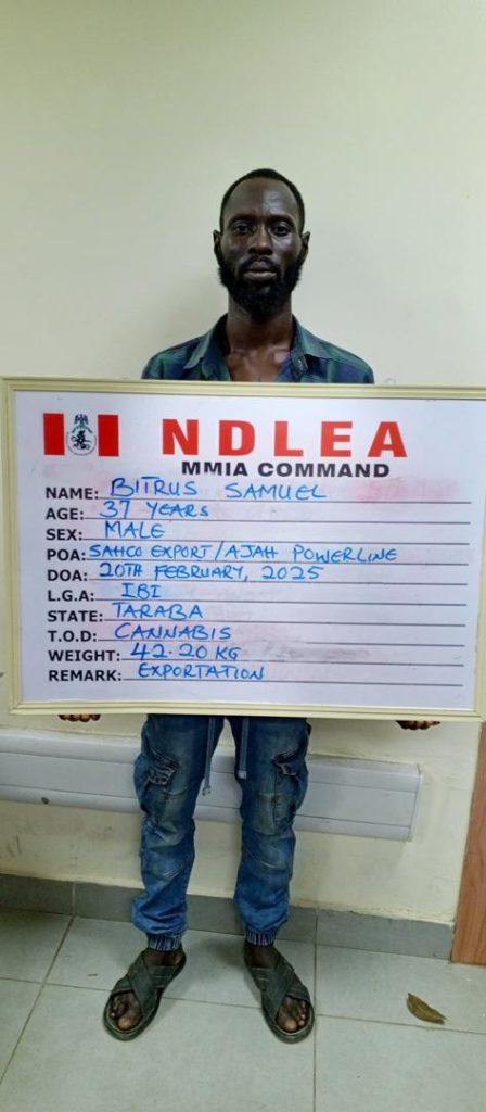Babafemi said another bid by a drug trafficking syndicate to ship 68 parcels of Ghanaian Loud with a total weight of 42.2kg concealed in walls of crated cartons to London, UK, through the export shed of the Lagos airport was also frustrated by NDLEA officers on Friday 21st February. Three suspects: a freight agent and two dispatch riders were initially arrested in connection with the seizure before the mastermind of the shipment, Samuel Bitris, was swiftly traced to his Exodus Estate, Ajah, Lagos home where he was arrested.