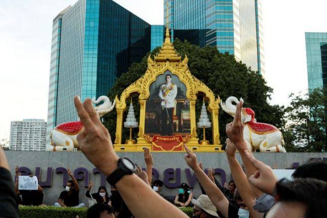 Protesters demonstrated outside the headquarters of the Siam Commercial Bank, Thailand’s biggest bank, in which the king’s 23% stake worth over $2.3 billion makes him the largest shareholder.