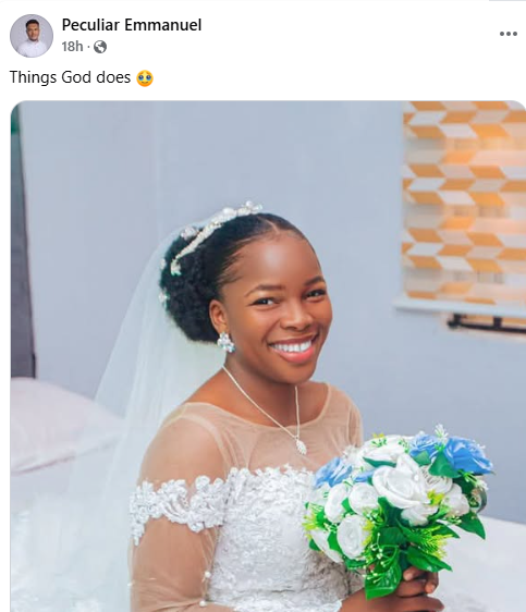 A Nigerian man, Peculiar Emmanuel, has celebrated his wife, Mercy, for preserving her virginity till marriage.
