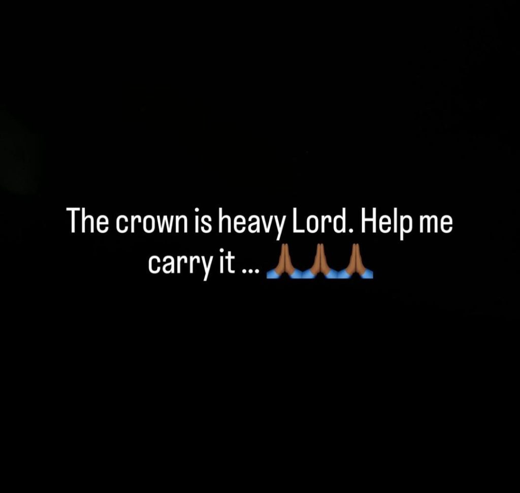 The Afrobeats queen posted a short but powerful message that read: ‘The crown is heavy, help me Lord.’