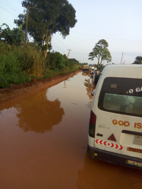 I came back from Abuja to Aba 2 days ago. We were stuck in this road for a good 16 hours! Yea… You heard me right. 16 hours! Though some people left especially those heading to Onitsha, those of us heading to PH and Aba slept on this road because it was totally dead locked and impassable! Mind you that I left Abuja around 9 in the morning and arrived this road around 5. Then the story changed. Not until 9 am the following day were the villagers able to come out and help in pushing stuck buses and fallen trucks and trailers.