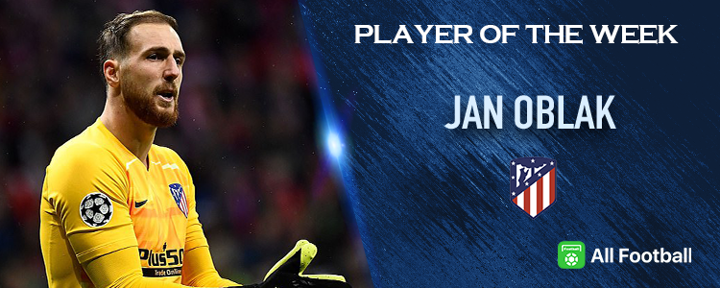 Atletico Madrid’s stopper Jan Oblak has been named All Football Player of the Week for his unforgettable performance against Liverpool.