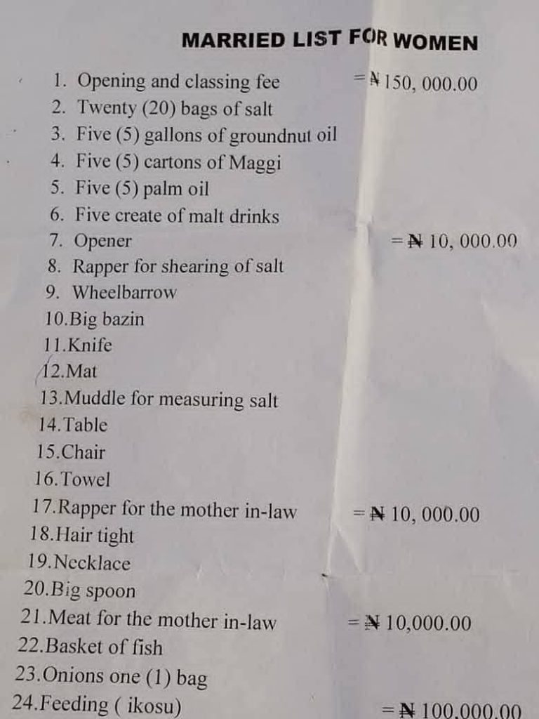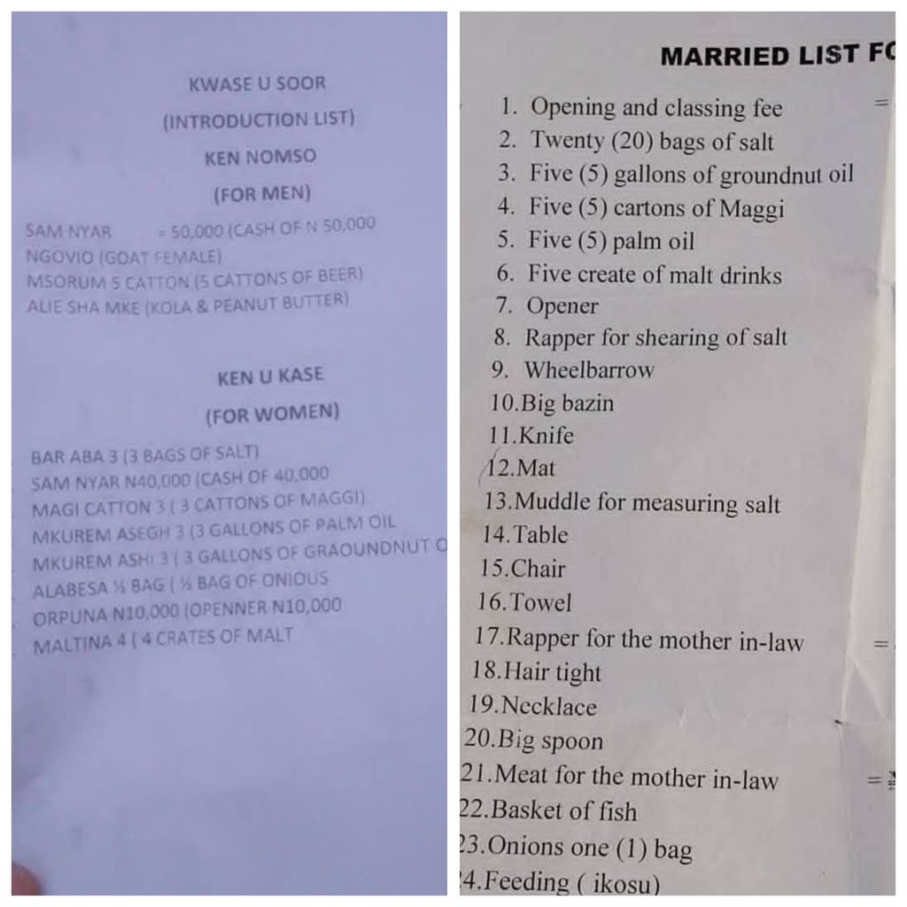 The marriage list is stopping me from getting married - Benue lady cries out for help as her family demands items worth over N2m from suitor - 9jaflaver