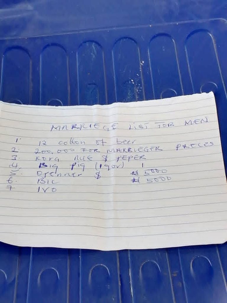A young Tiv woman from Mbaaji, Kunav, in Vandeikya Local Government Area of Benue State has cried out for help, alleging that her family is demanding a marriage list totaling over N2 million from her suitor.