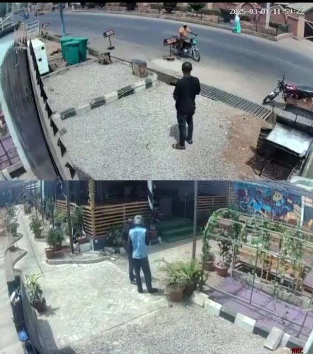 CCTV footage has captured the moment a delivery bike was stolen on March 1, 2025, at Vijobs, Flower Garden, Ilorin. The delivery man had parked his bike outside the Flower Garden and gone inside.