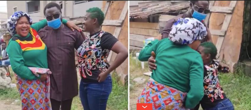 In the movie location, both actresses where filled with joy after they spotted Prince Okojie, as they rushed to hug him.