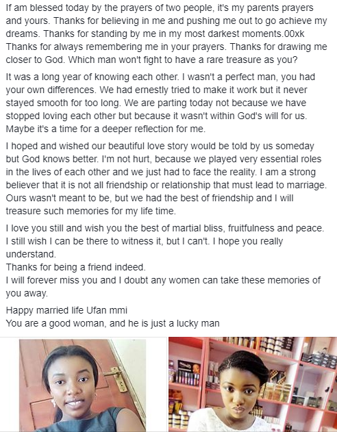 Akan Greatness Udom, a popular Facebook user amongst those in his circle, narrated how he met Ufan, how their relationship blossomed, and his shock at being told that she will be getting married soon to someone else.