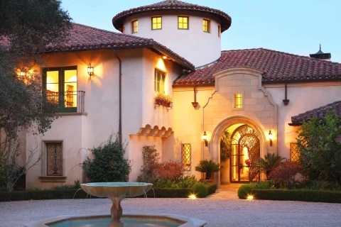 The Mediterranean-style home includes a main mansion and a detached 2,500 square foot guesthouse, totaling around 18,000 square feet and occupying more than 3.6 acres.