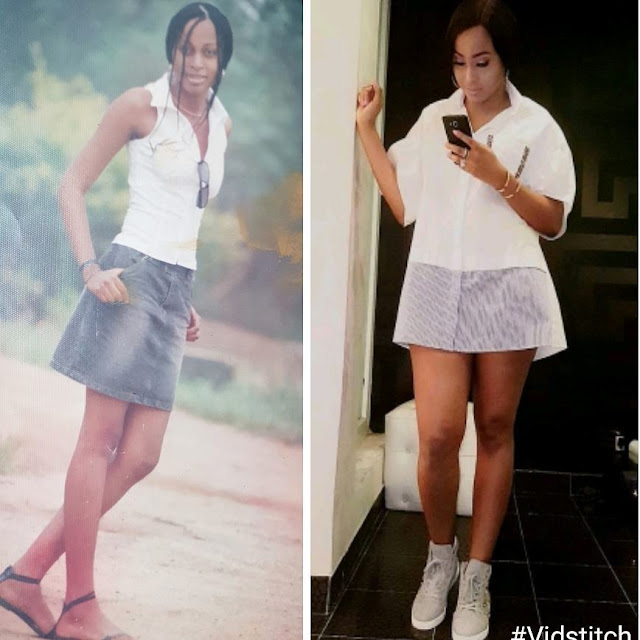 Comedian, Ayo Makun aka AY took to his IG page to share this throwback photo of his wife, Mabel beside a recent photo.