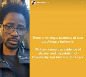 According to the gay rights activist, “there’s no single evidence of God but Africans believe it”