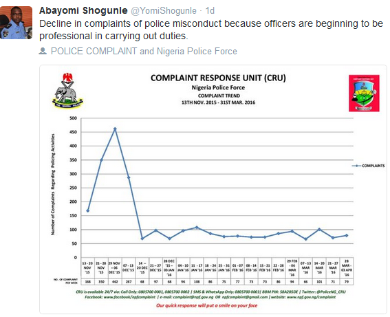 According to Abayomi Shogunle, the Officer in Charge, Complaint Response Unit, of the Nigerian Police, there’s been a decline in complaints of police misconduct…