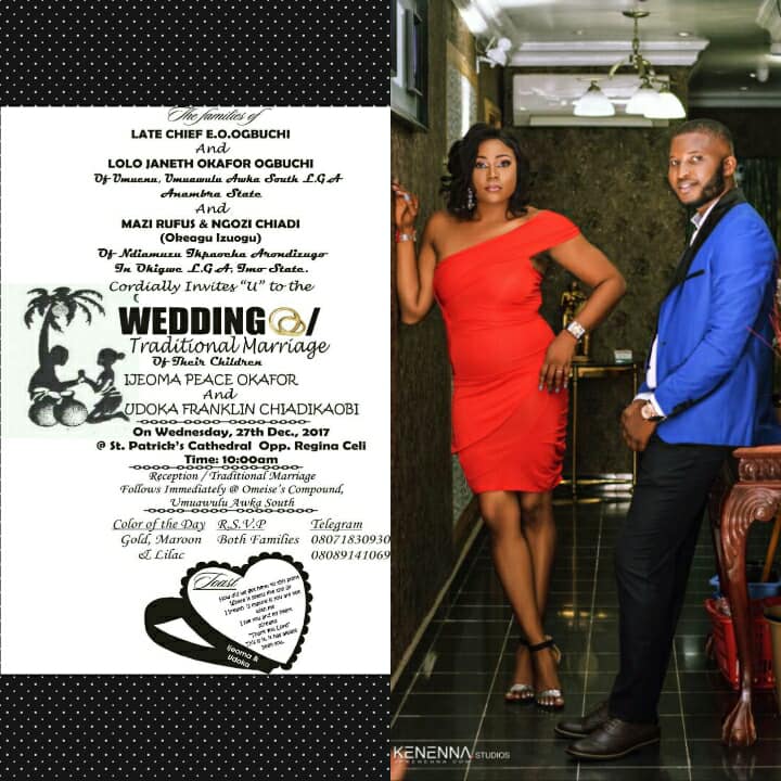 I couldn’t find words.Time! Time has thought me to be patient , my journey with My Benzema didn’t start today or yesterday, took us 8years to get here, 8years of laughter,strong beef,quarrels and crazy people trying to break us but the adage that says”the more you try to break something the stronger it gets” has stuck with me and the day he asked me to share enternity with him , i hurriedly said yes and thought that my journey would end that year in 2015 but hell no it didn’t I waited an extra 2 years with a ring on my finger, believe me I had pressure from everyone why i wasn’t married yet, some started calling me “Lord of the Rings” but what kept me going was the fact”what will be , will be” it has always been Chiadi Frank Udoka and no matter how long it took for us to be together i was willing to wait, the love and bond we share is like still waters , I love you beyond words and I bless God for sending you to me, my people its a wrap, come join us on our big day, we are FINALLY getting married.#thewaitwzworthit#Benzima2017#Asachiadidonturnreality.#27thDec#datsdgoodnews…