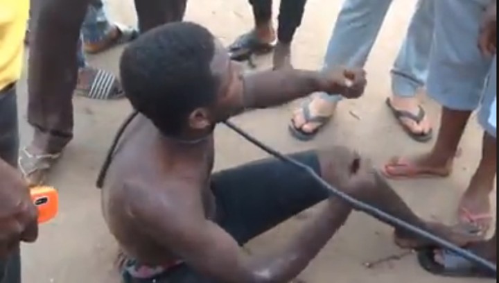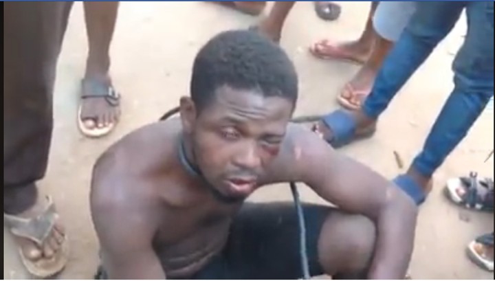 He was handed over to the police after much beating for further interrogation and prosecution.