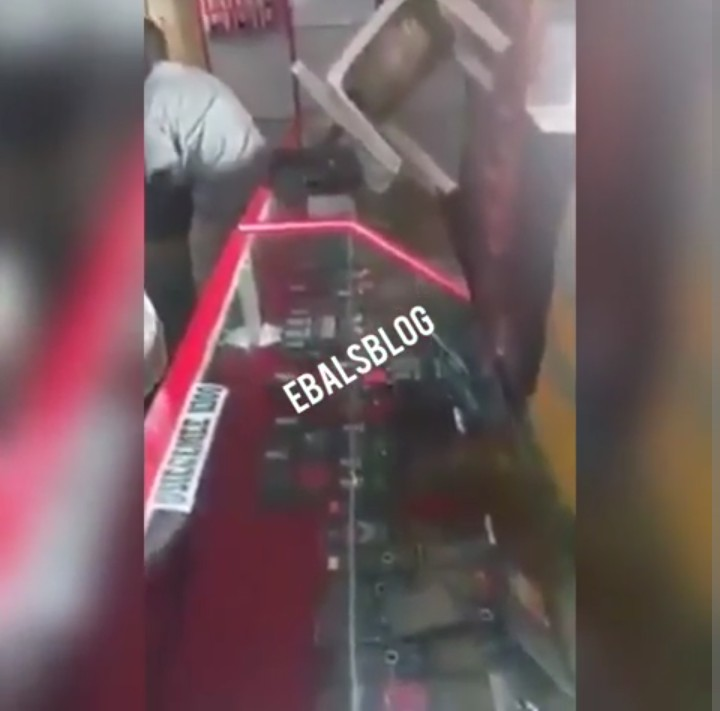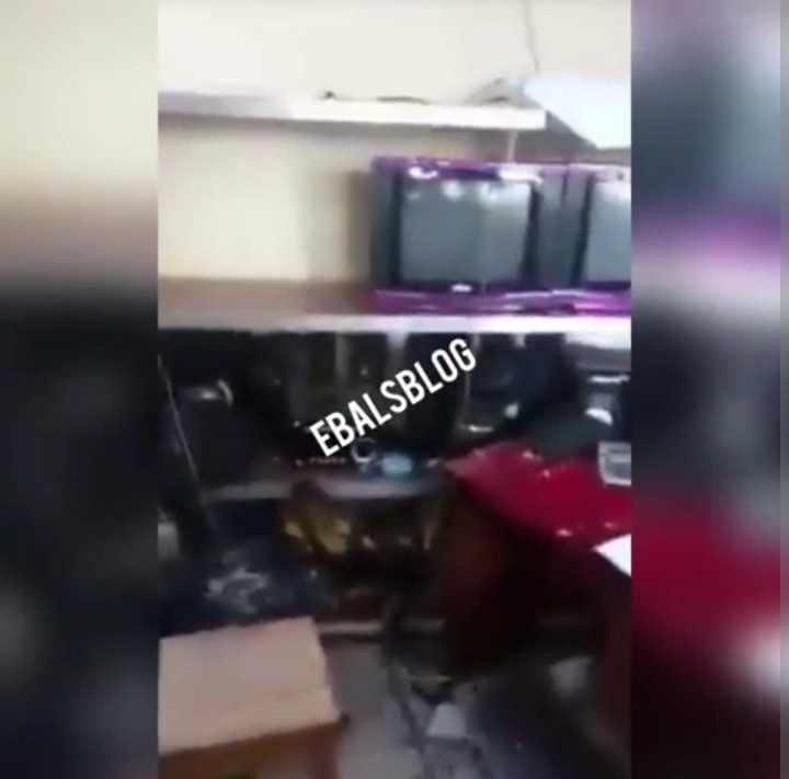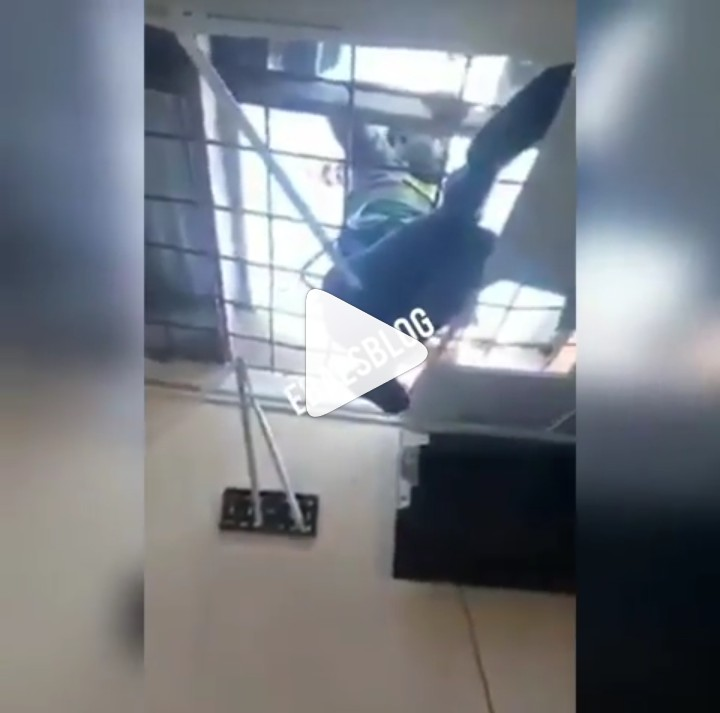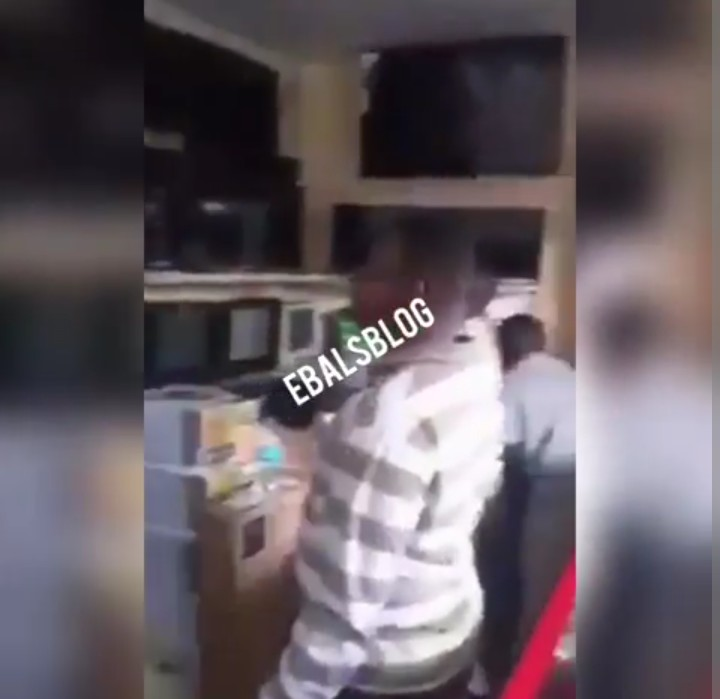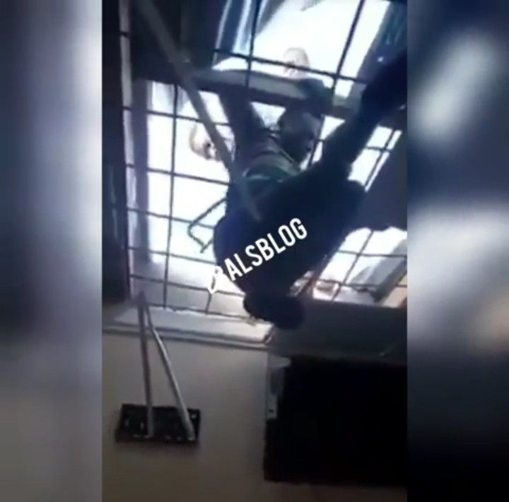 Man who tried entering a shop from the roof top to steal Tv sets and other gadgets gets stuck on the roof top until the store owners arrived the store, rescues him and then handed him over to the security.