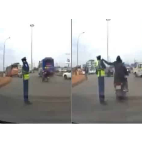 In the video, the policeman could be seen standing in the middle of the road probably controlling traffic while making a phone call.