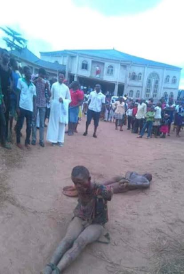 These two thieves were stripped naked and mobbed by angry worshipers at Sacred Heart Catholic Church in Ukunu Eziora Ozubulu, Nnewi Amabra state after they stole a motorcycle during the church’s 5.30am mass today September 27th. They were later handed over to the police.