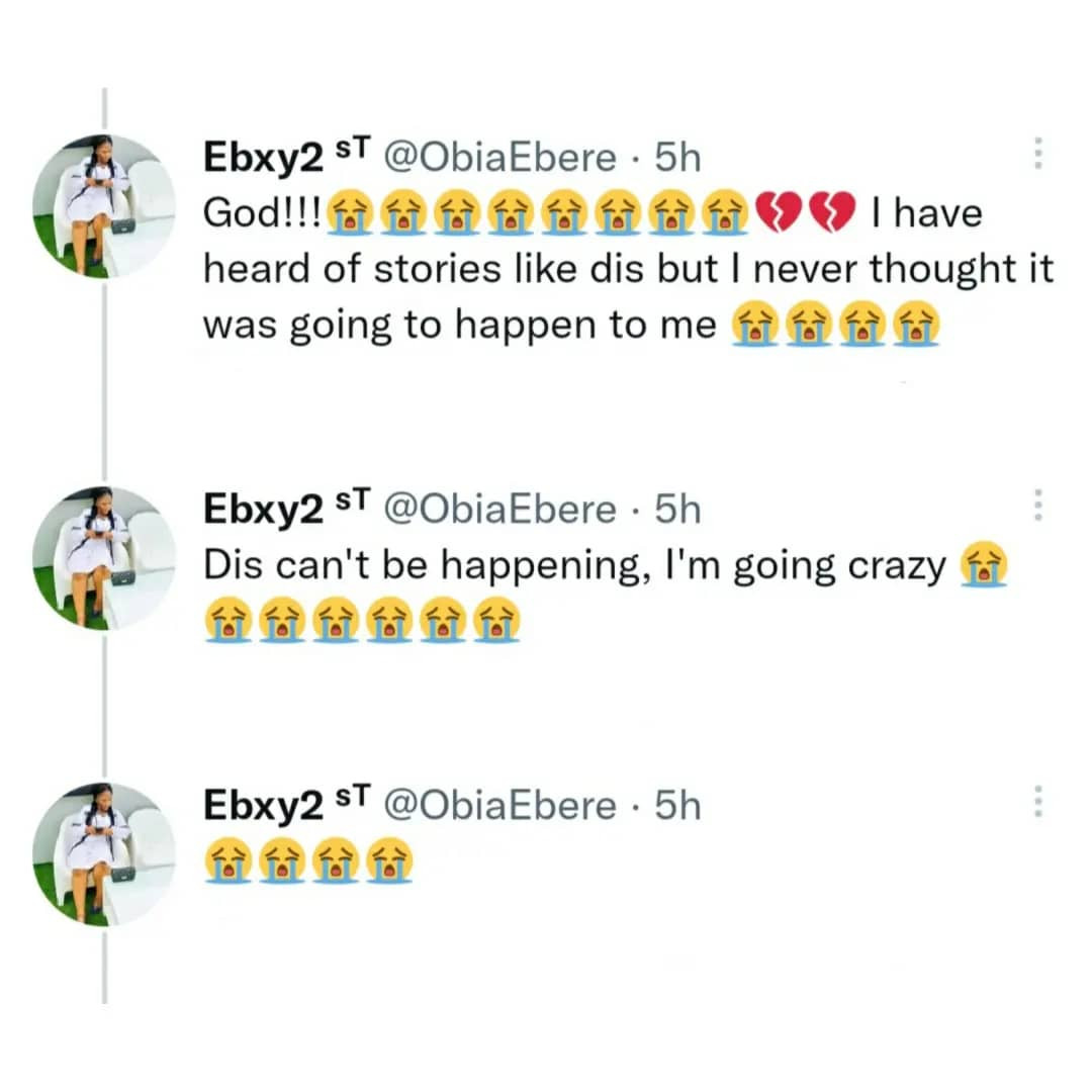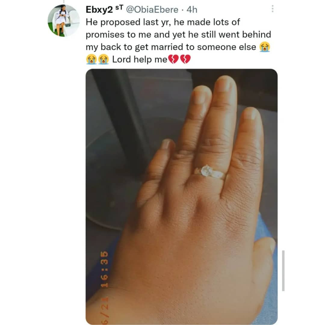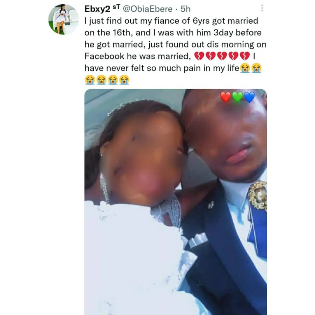 A Nigerian woman, Obia Ebere has been left devastated. Ebere stated that she just found out that her fiancee of 6 years secretly got married to another woman.