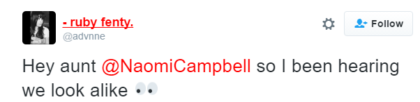 Ruby tweeted at supermodel Naomi Campbell and said she’s been hearing they look alike.