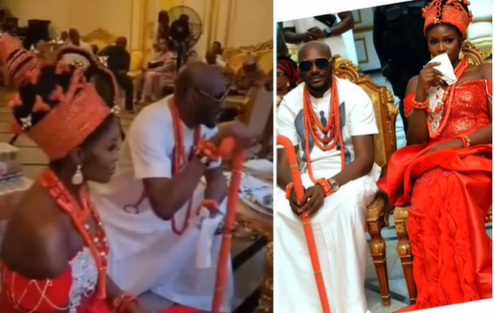 A video showing the moment singer 2Face Idibia and Natasha received parental blessings during their traditional wedding has surfaced online.