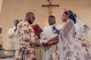 A Nigerian couple decided to be different by dressing in traditional Isiagu for their church wedding.