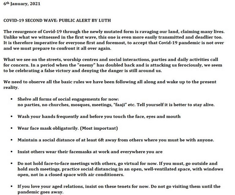 The Lagos University Teaching Hospital LUTH has warned Nigerians that the second wave of COVID19 is worse than the first one because it is easily transmittable and deadlier.