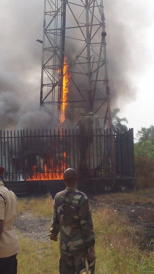 MTN Mast located at Secretariat Road, Ibeno, Eket, Akwa Ibom state (100m from Exxon Mobil (QIT)) was gutted by fire this morning. The fire was sighted by a FRSC Personnel on patrol who immediately put a call across to Akwa Ibom State Fire Service Eket. The fire incident was however controlled by the fire service but not after consuming the generating set and other equipment on this site.